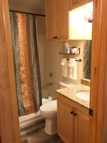 Snowflake is a cozy studio unit with a separate bunk room. At 350 square feet, you will appreciate the efficient layout. It has a queen murphy bed in the living room that allows you to capture the sunrise over the valley to the east and the bunk room has twin XL bunks, suitable for adults. There is a flatscreen Samsung smart TV in the living room and wi-fi. The kitchen has granite countertops and stainless appliances and is equipped with all the basic small appliances, cutlery and dinnerware along with most of the spices, oils, coffee, tea and condiments you would need to prepare a great meal or snack at your vacation home away from home.